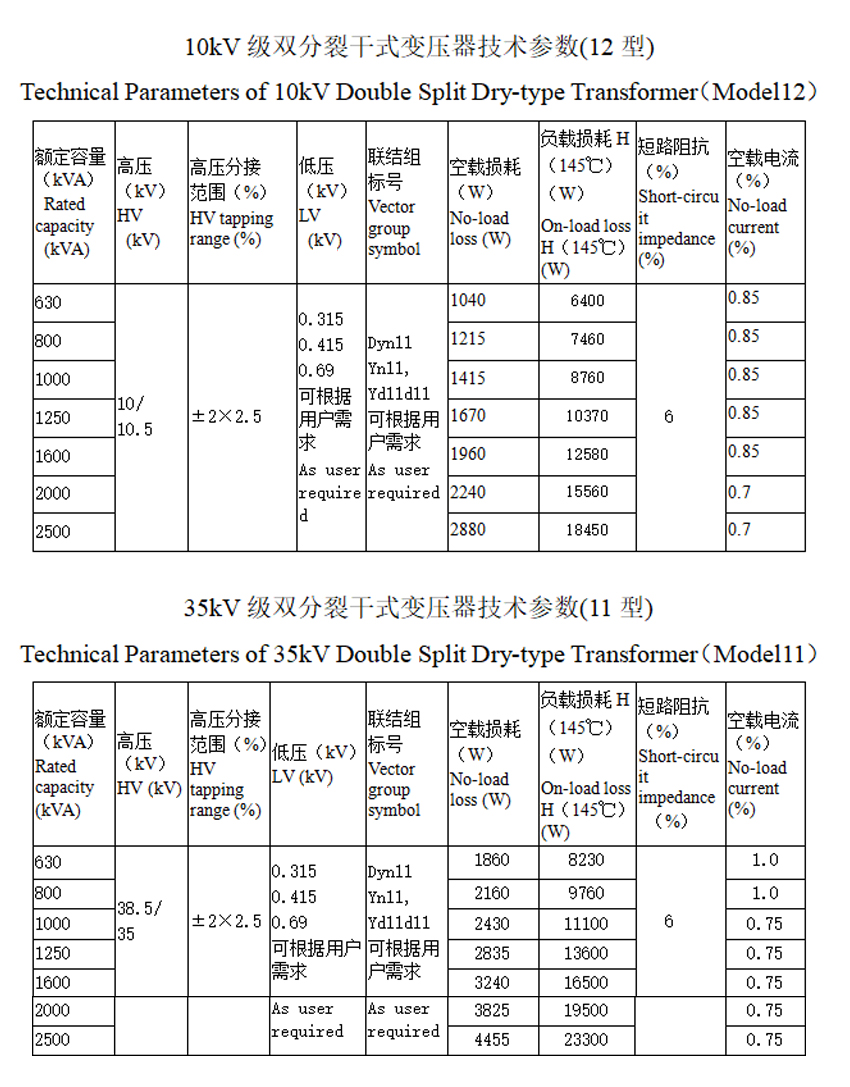 雙分裂干式變壓器